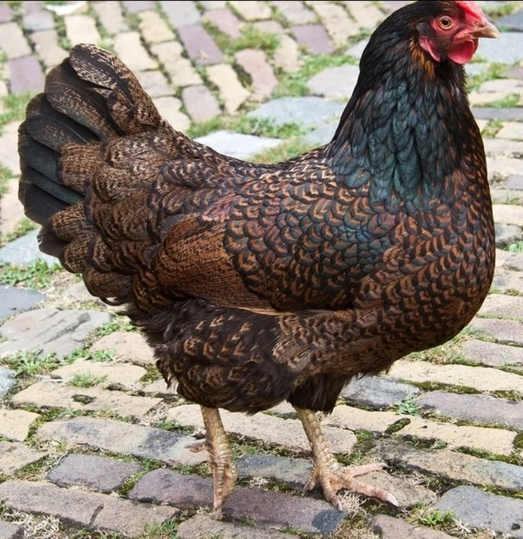 Introducing the Barnevelder, a distinguished Dutch breed celebrated for its striking plumage and reliable egg production. Originating in the Netherlands, these chickens are the result of cross-breeding local Dutch birds with imported Asian breeds in the late 19th century. The Barnevelder is named after the town of Barneveld, reflecting its rich heritage.