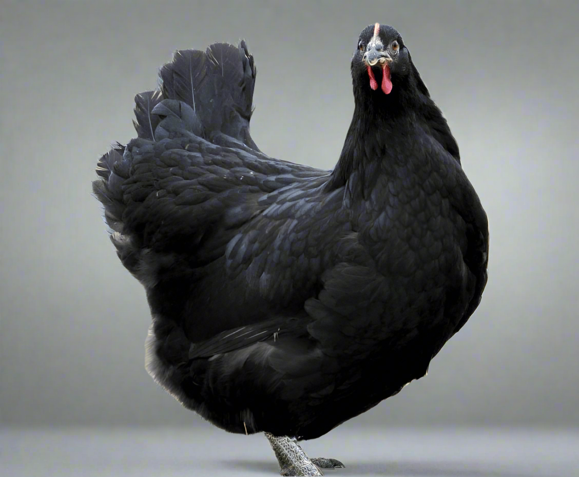 The Black Jersey Giant is the largest purebred chicken in the US and quite possible the world! Brahmas are the only other breed that comes close to the size. It has a moderate to long body that is both wide and deep. They develop a green sheen over their black plumage as their adult feathers grow in. They are good cold-tolerant breeds and do well in heat with proper shade and ventilation. Despite their size, they are gentle and docile and generally good with children. They are easy to handle, not very flighty and not easy prey for hawks because of their size. They do stand out in meat production being as large as they are.