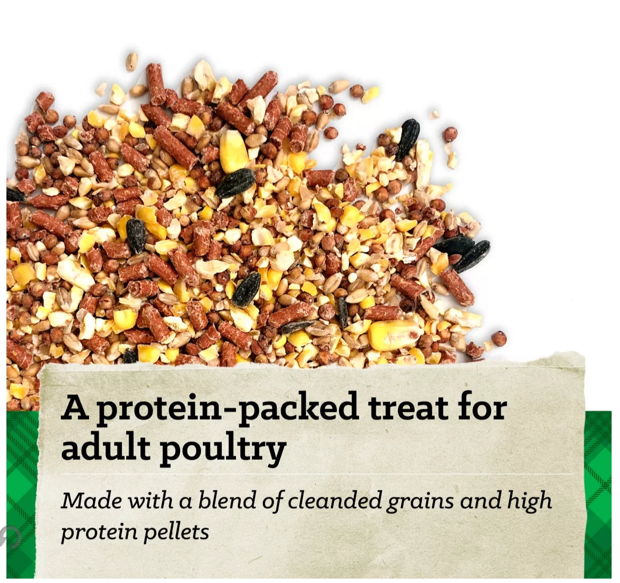 A special blend of scratch grains satisfies natural pecking behaviors, plus provides energy to support growth and egg production.