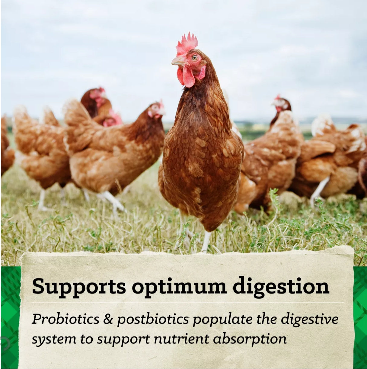 - A blend of grains to provide supplemental energy to support growth and egg production