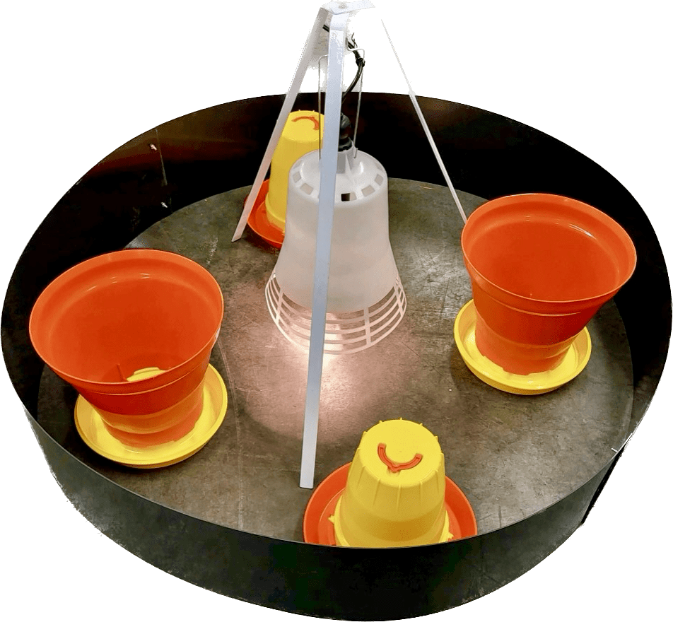 Complete brooder kit with drinkers, feeders, infrared heating, adjustable light stand and walls